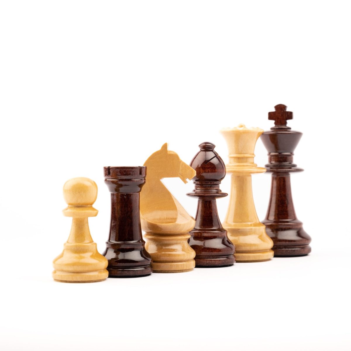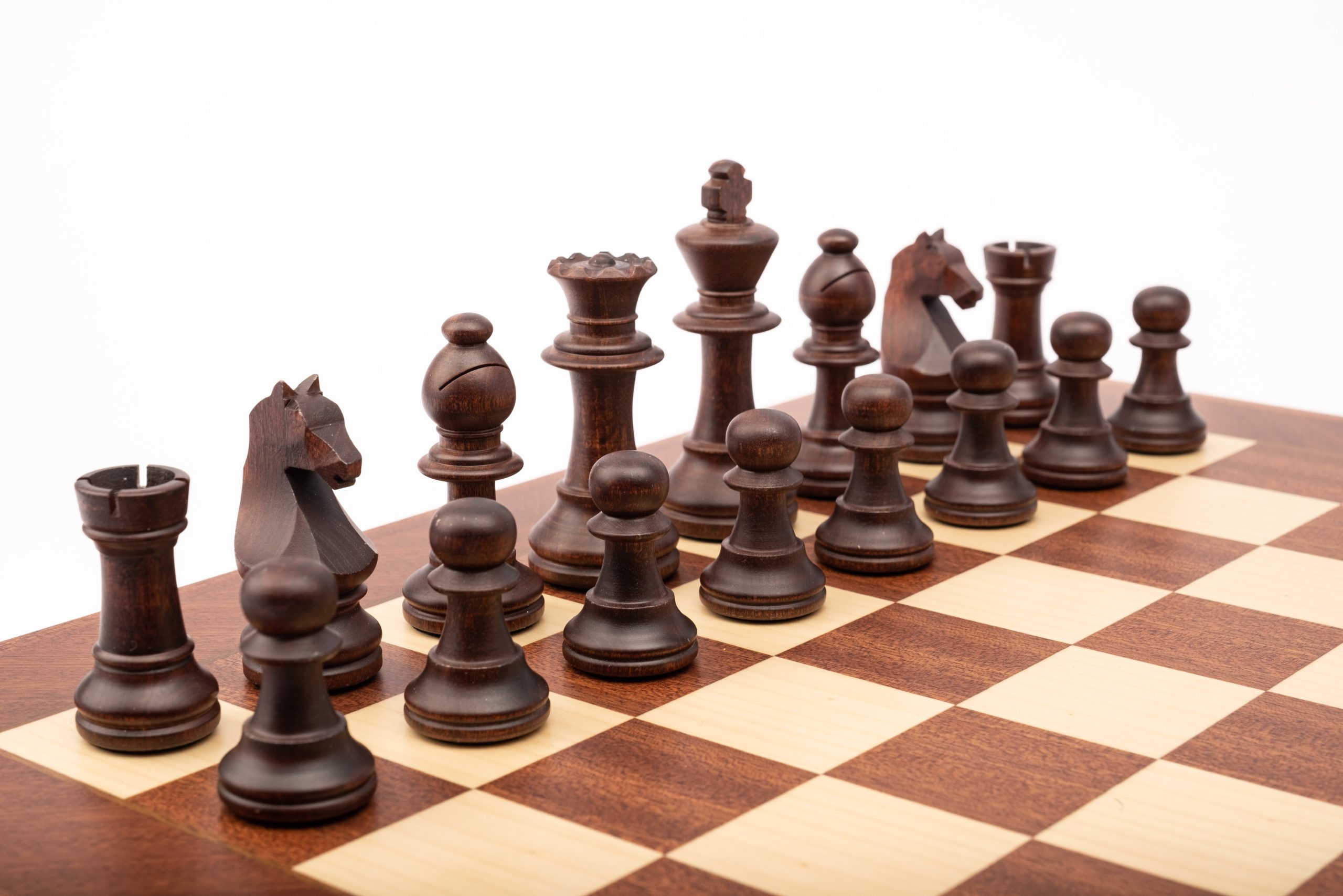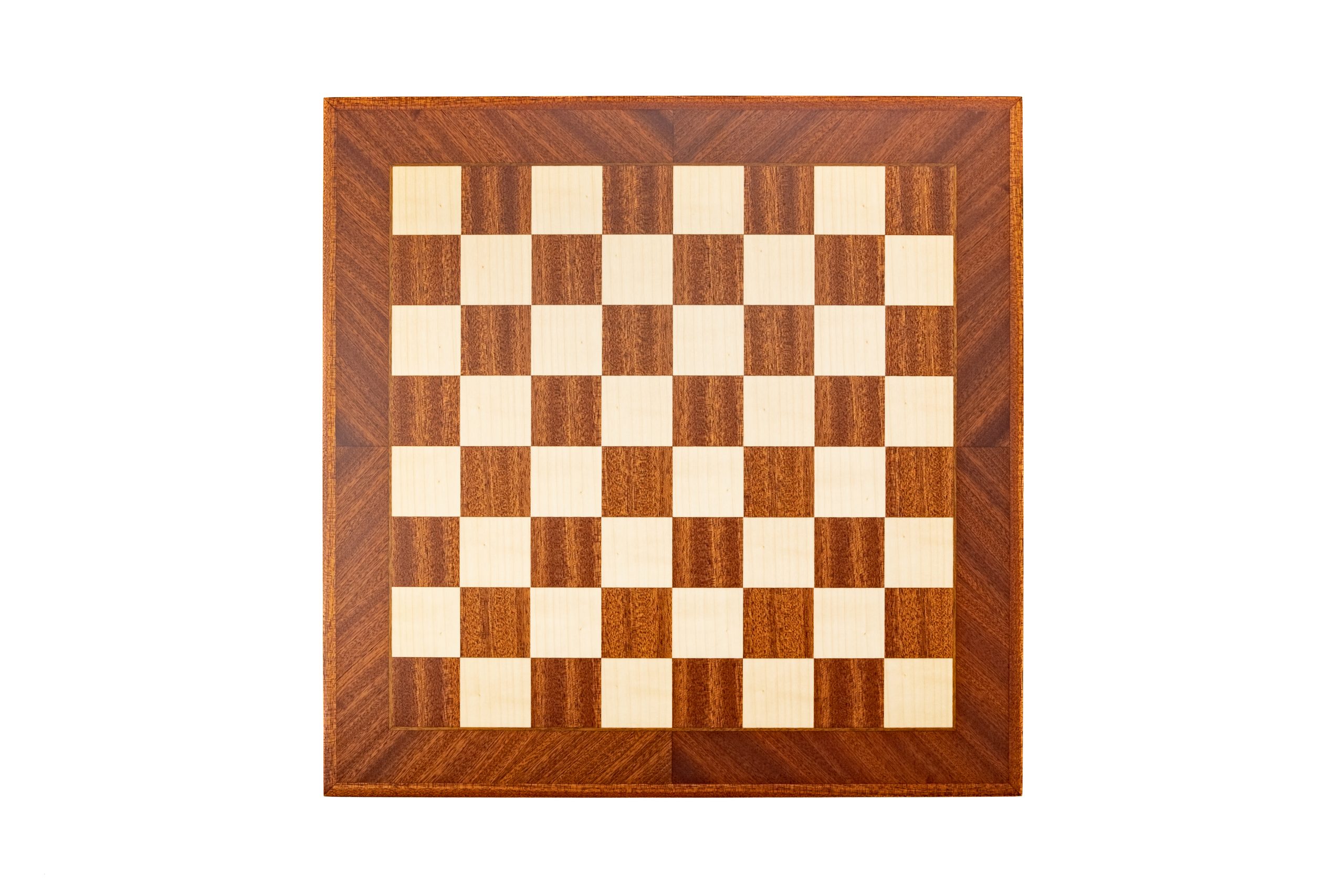 Todos nuestros tableros de ajedrez son productos de marquetería con auténticas chapas de madera elaboradas artesanalmente por Rechapados Ferrer. Éste en concreto, está hecho con chapas de madera de sapelli y sicómoro. El marco es de sapelli y montado en diagonal.