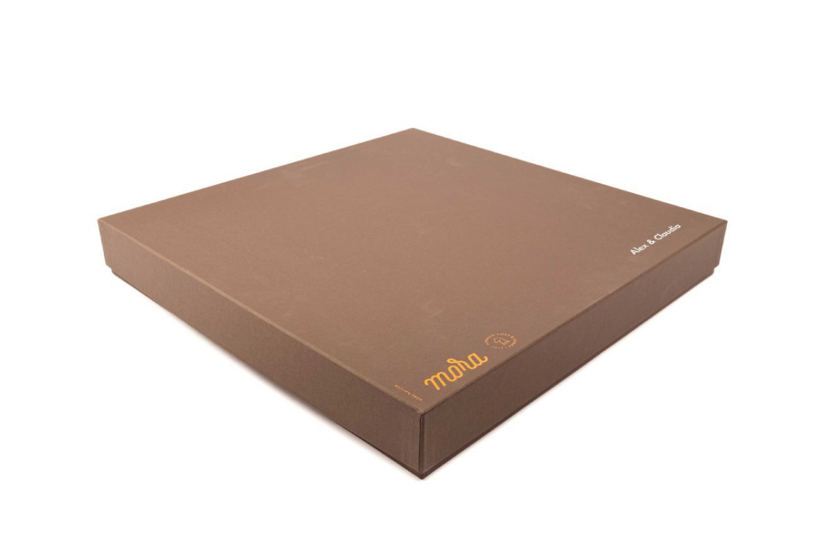 Estoig de cartó prèmium de 41,5 x 41,5 x 5,7 cm amb opció de personalitzar la tapa.