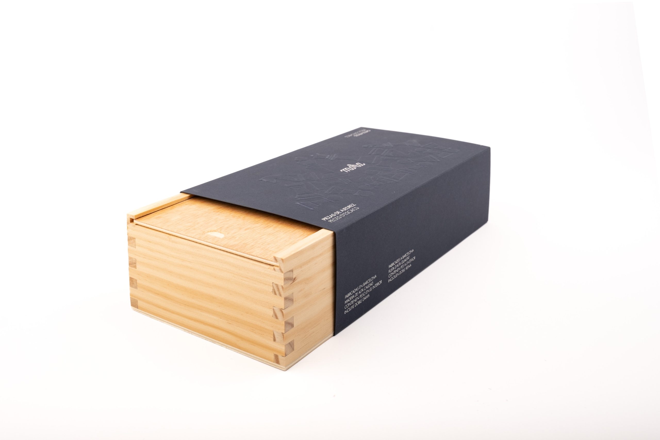 Les peces d’escacs venen dins d’una caixa de fusta de pi amb tapa corredissa. Amb embalatge especial per aquestes peces plomades d’alta qualitat.