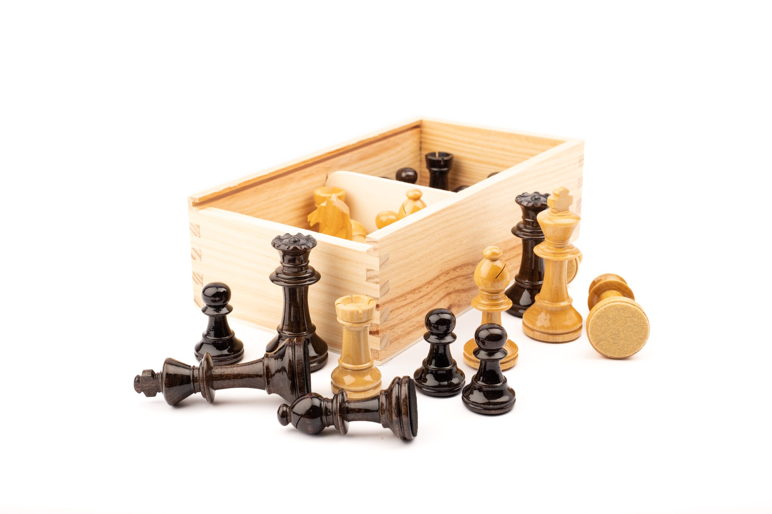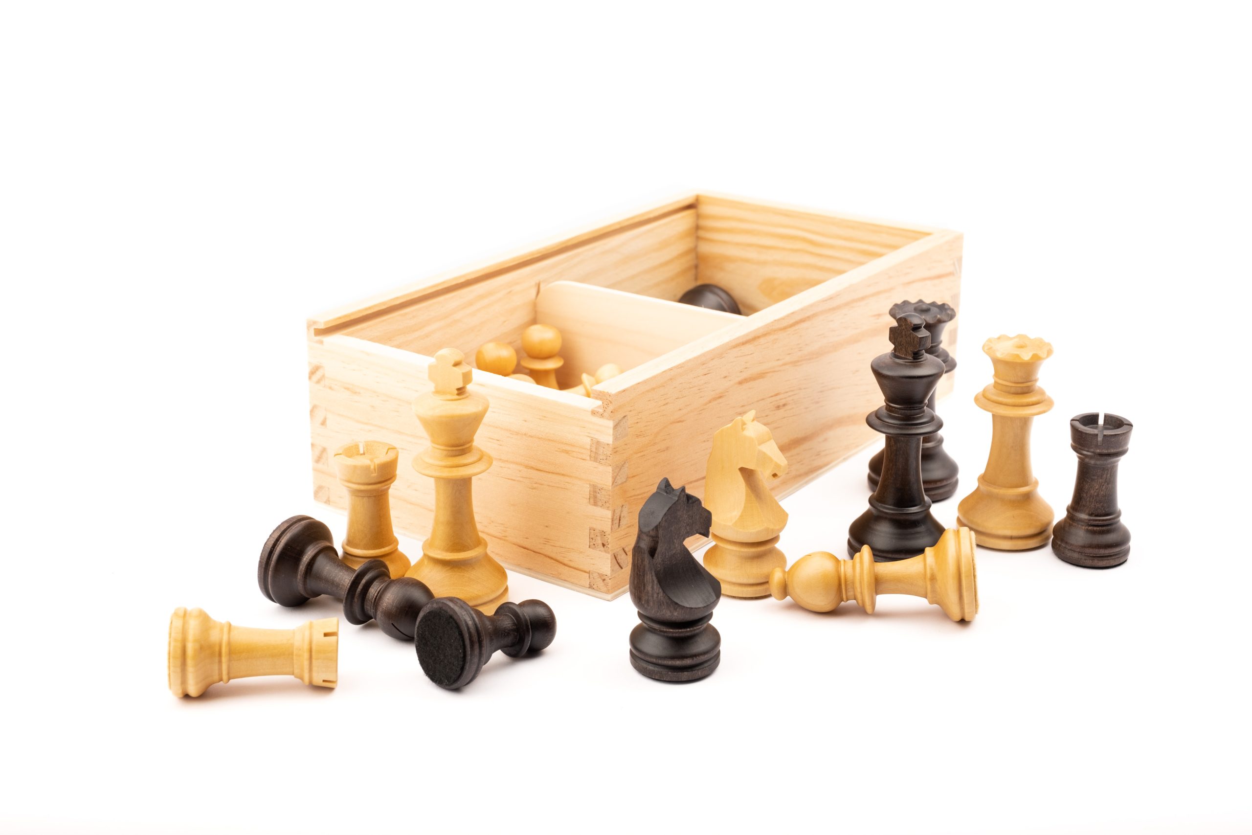 Les peces d’escacs venen dins d’una caixa de fusta de pi amb tapa corredissa. Amb embalatge especial per aquestes peces plomades d’alta qualitat.